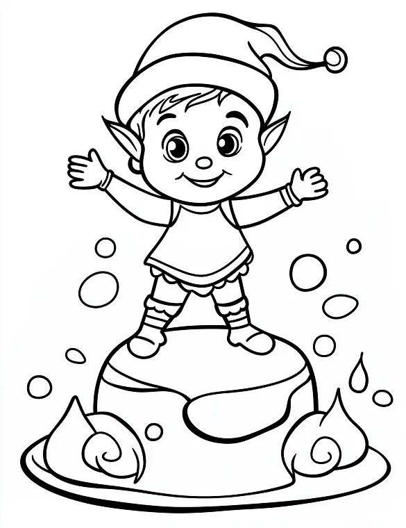 Charming Elf Standing on a Candy Swirl Coloring Page by Mindset Flow
