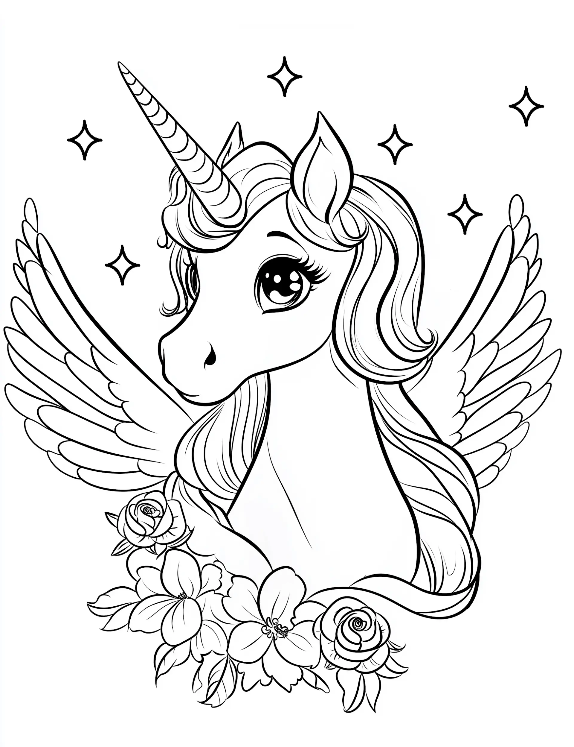 - Suitable for all ages — children to adults — combining the fun of a winged unicorn coloring page with the sophisticated elegance of floral design.