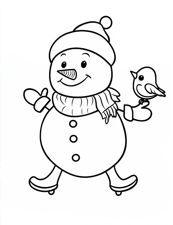 Charming Snowman with Bird on Hand Coloring Page by Mindset Flow
