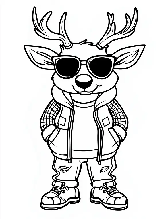 Cool Reindeer in Sunglasses Coloring Page By Mindset Flow