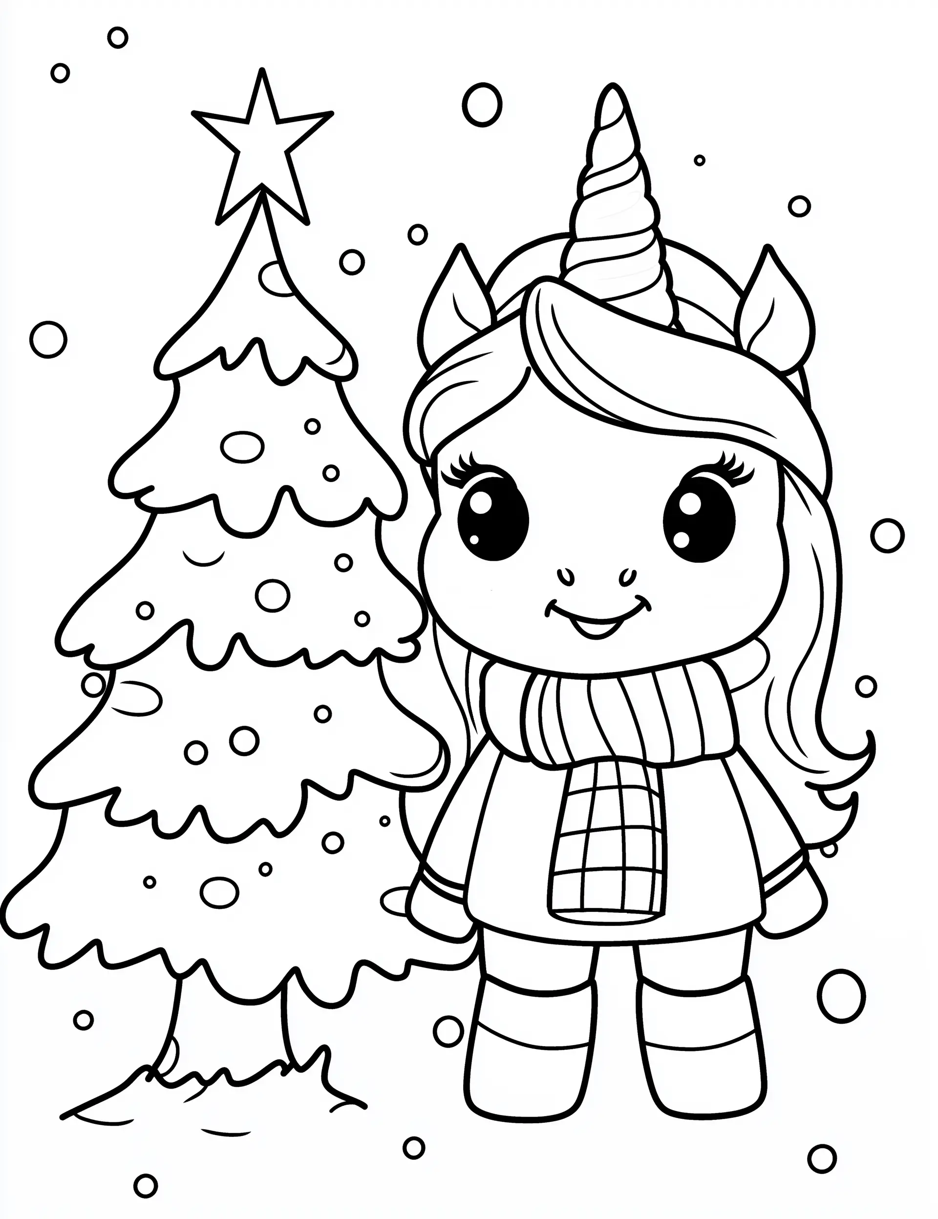 Looking for a delightful way to unwind during the festive season? Dive into a world where a whimsical unicorn stands beside a beautifully decorated Christmas tree, surrounded by snowflakes and holiday cheer. This printable coloring page offers a heartwarming scene that combines the magic of unicorns with the comfort of a cozy winter evening.