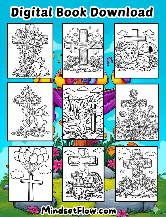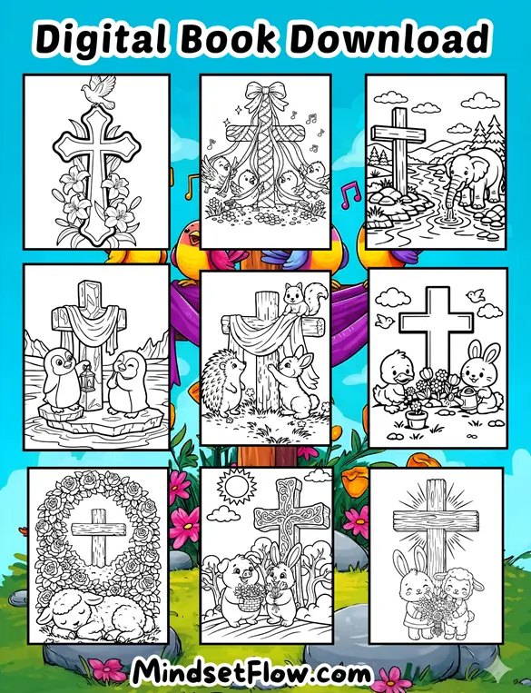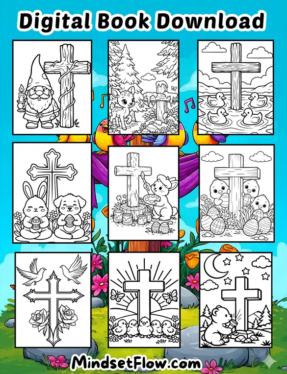 And just when you think things couldn’t get more charming, you get a delightful Easter Cross moment, with birds and bunnies bonding in the springtime sunshine, as they hold hands (or paws!) while pondering their Easter blessings. It’s a thoughtful way to bring a little calm to your coloring adventure, perfect for those quiet moments when you just need to feel centered and peaceful.