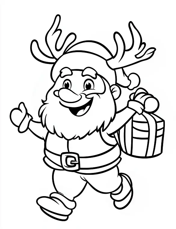 With the jolly Santa holding a bag Christmas coloring page, you can experiment with the bag’s design, Santa’s suit, and the background. Each detail allows you to personalize the holiday scene.