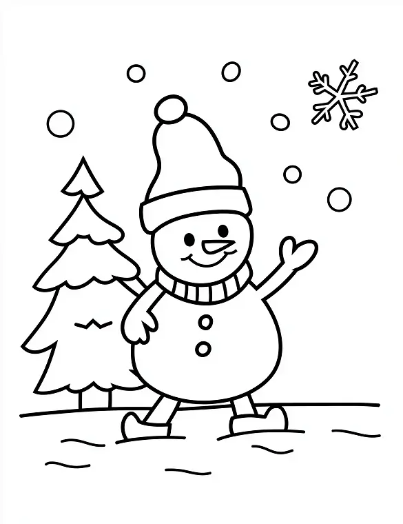 Add festive fun with this snowman coloring page of a cheerful snowman waving.