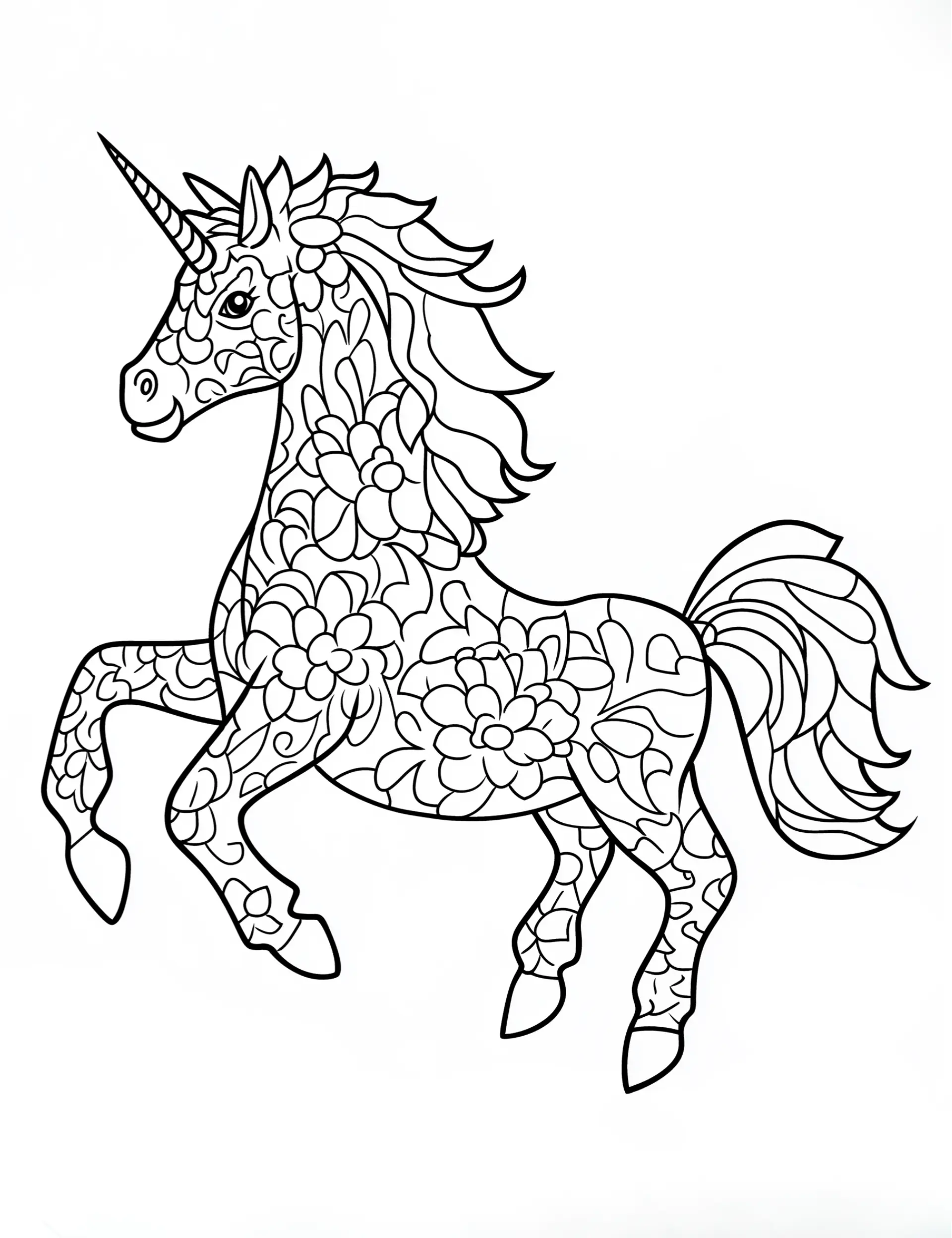 Ready to embark on a creative journey? Download the Rearing Unicorn Filled with Decorative Floral Mandala Patterns Coloring Page now and bring this magical unicorn to life! Simply add it to your cart and get immediate access to this beautiful design.