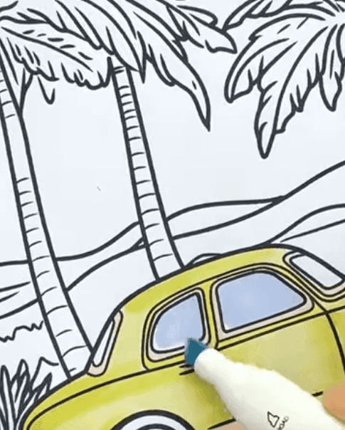 A: Absolutely! Our Vintage Car Driving By The Beach Printable Coloring Page is suitable for crayons, colored pencils, markers, or even digital coloring apps.
