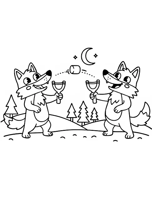 Immerse your creativity in a world of whimsical adventure with our Wolves Playing Marshmallow Toss Coloring Page. This delightful illustration captures the playful spirit of the wild, bringing together the majestic nature of forest creatures and a touch of sweet, campfire fun. It is the perfect choice for anyone looking to add a unique twist to their collection of Wolves Coloring Pages.